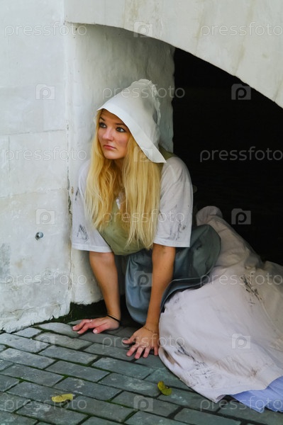 Девушка-золушка возле усадьбы