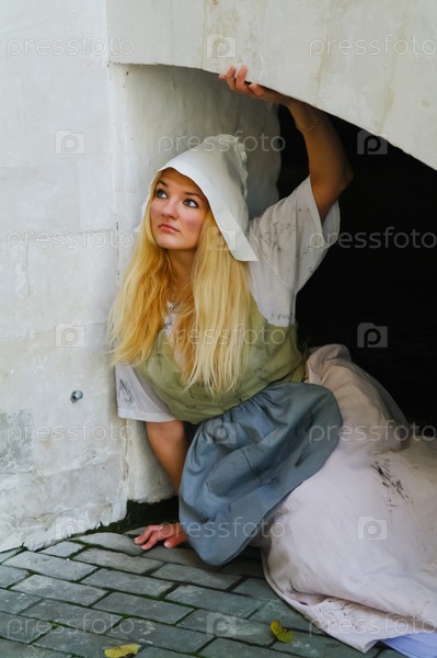 Девушка-золушка возле усадьбы