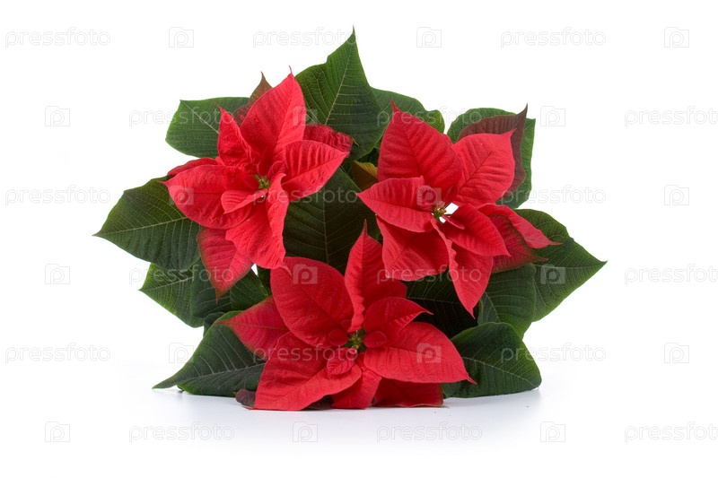 Красная пуансетия на белом фоне