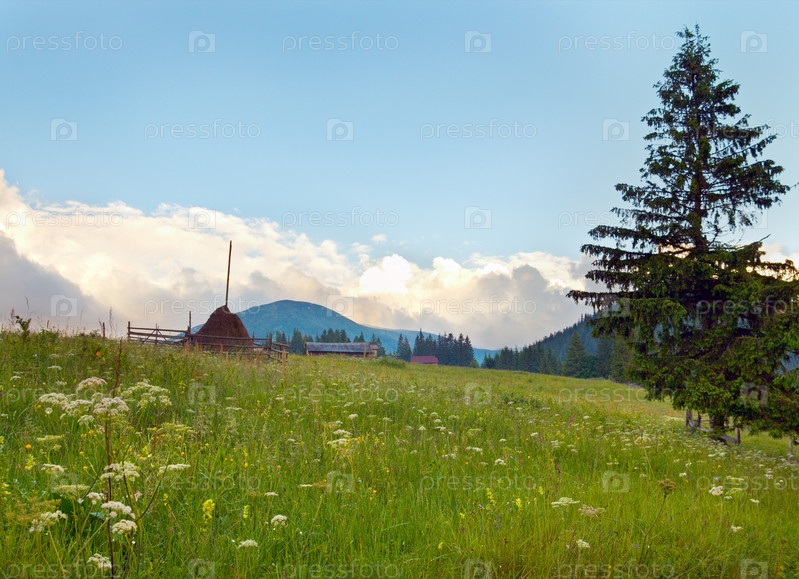 Стог сена в зеленом поле