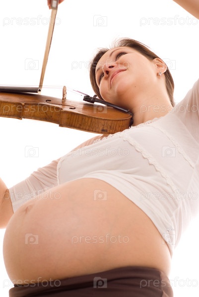 Беременная женщина играет на скрипке