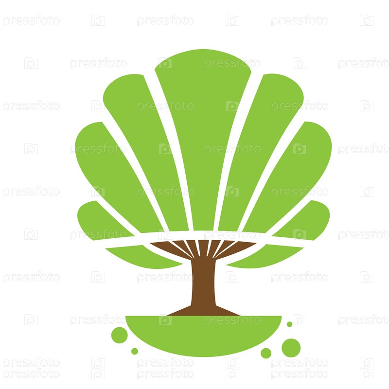 Дерево логотип значок с зелеными листьями плоский