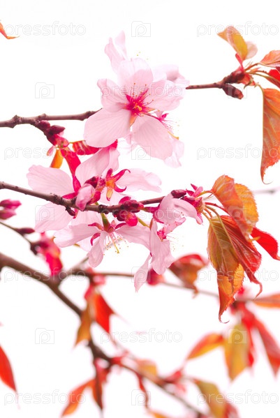 Цветущая сакура на белом