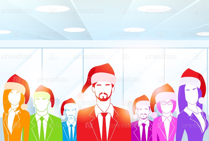 Бизнес группы людей в офисе красочные силуэты