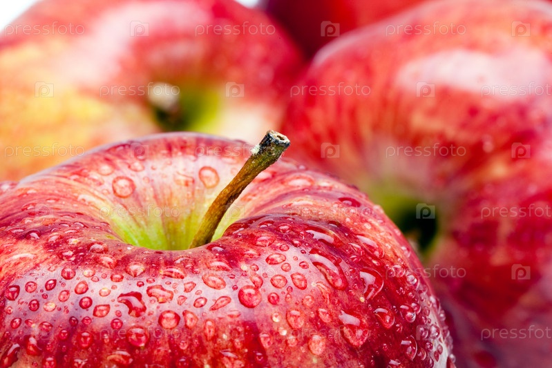 Красные яблоки в каплях воды