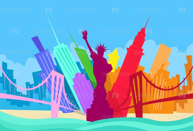 Силуэт небоскреб абстрактный пейзаж города Нью-Йорк