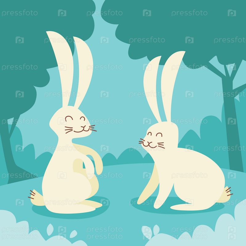 Два белый кролик, сидя на траве ретро лес