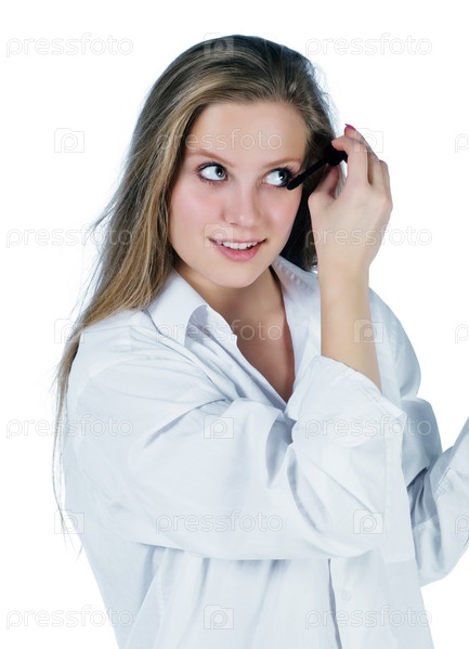 Портрет молодой женщины, наносящей маскару