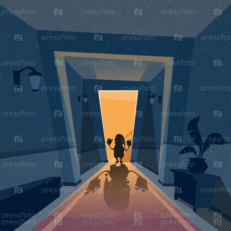Санта-Клаус концепции тени силуэт открытой двери свет ретро форма