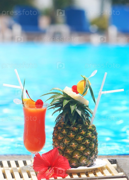 Два ярких коктейля возле бассейна