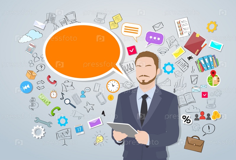 Бизнесмен с помощью планшетного компьютера