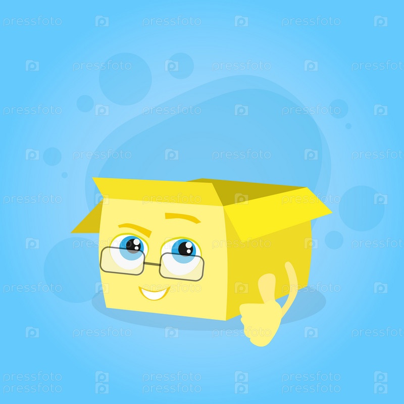 Картонные коробки пальца вверх руки палец жест желтый мультфильм