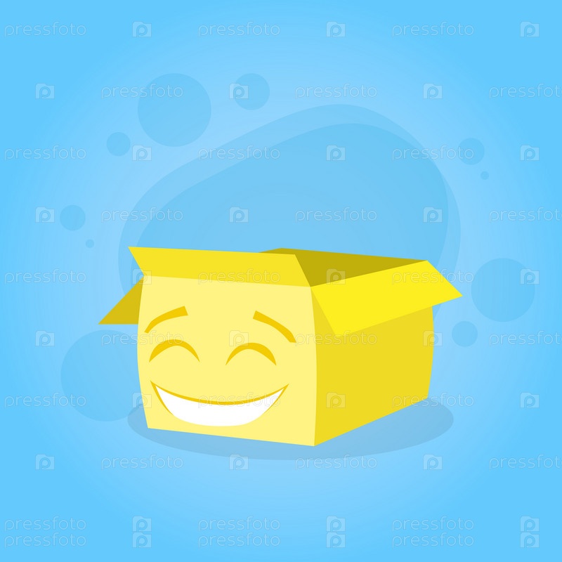 Картонные коробки желтый мультфильм характер счастливой улыбкой лицом