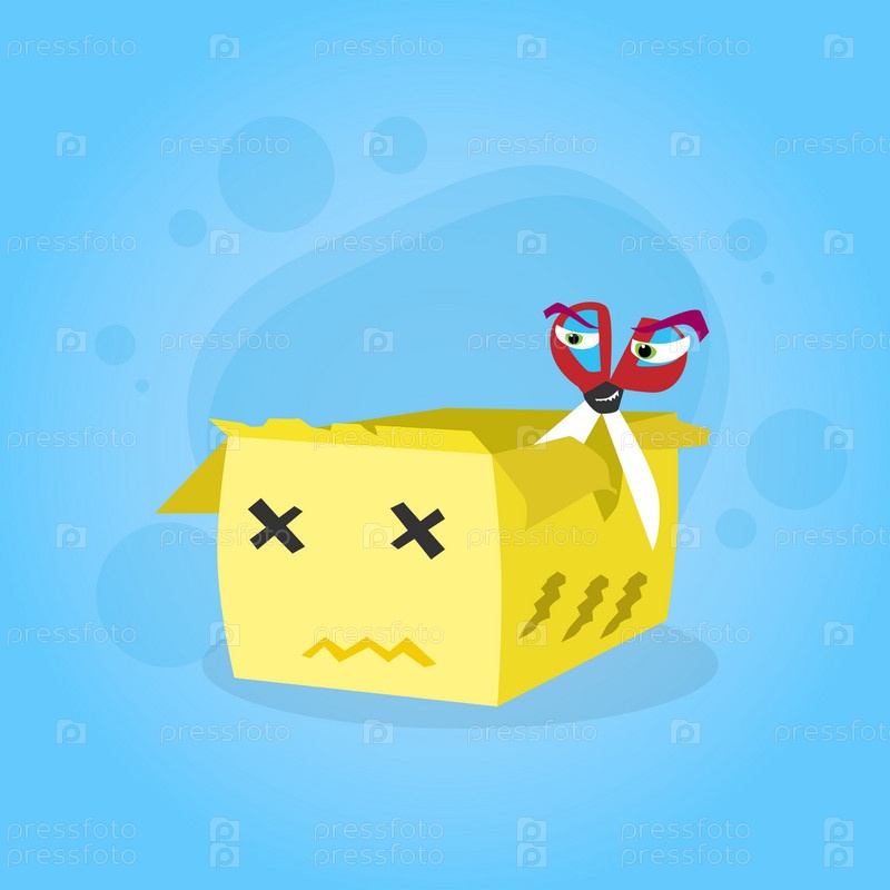 Ножниц вырежьте картонную коробку желтый мультфильм характер грустно Несчастное лицо
