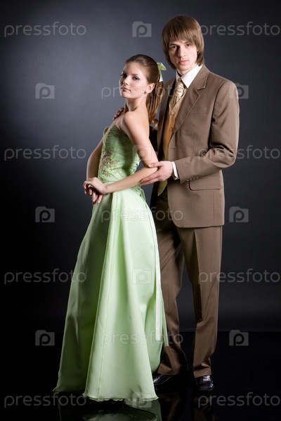 Молодая женщина и мужчина в свадебной одежде