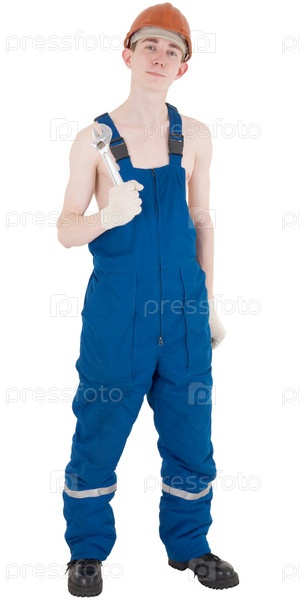 Мужчина в рабочем комбинезоне с обнаженным туловищем