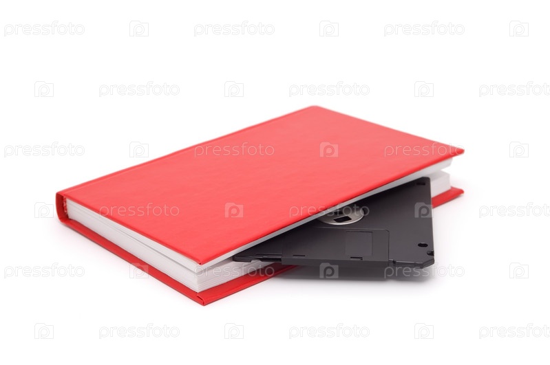 Книга с дискетой на белом фоне