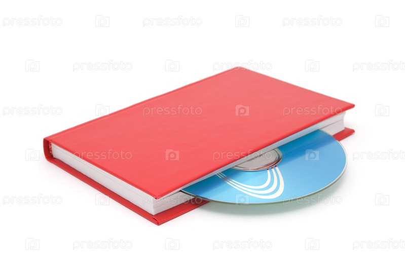 Книга с диском на белом фоне