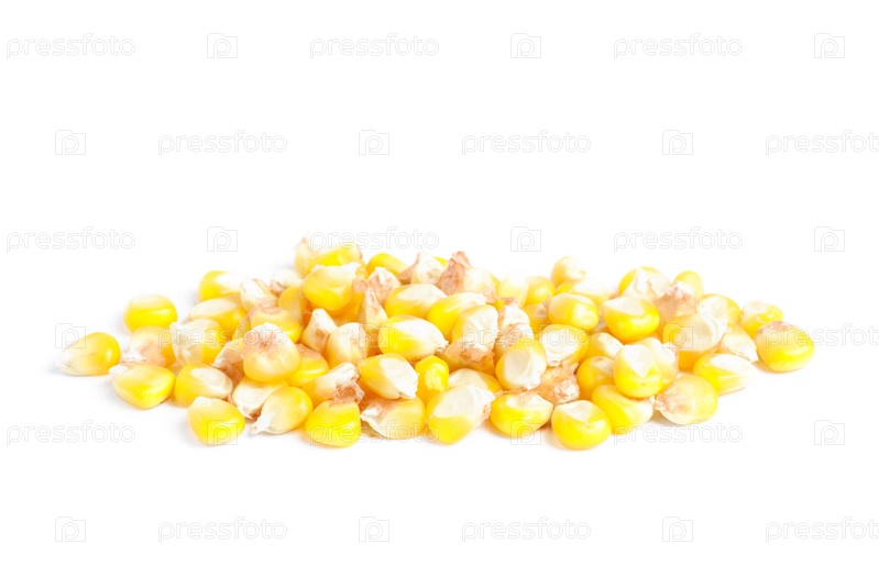 Спелые зерна кукурузы на белом фоне