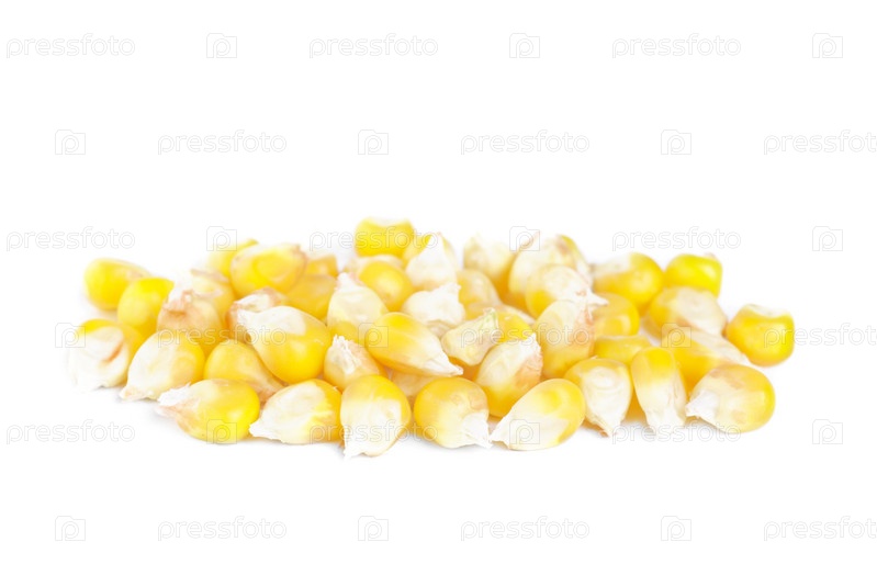 Спелые зерна кукурузы на белом фоне