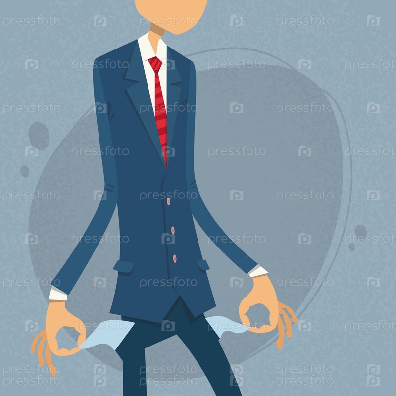 Бизнесмен показывать пустой карман, превращая наизнанку нет денег