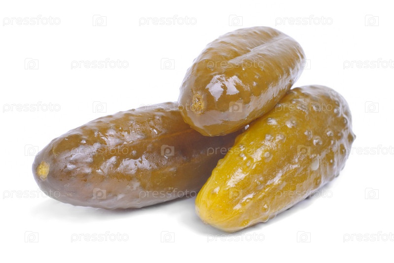 Три маринованных огурца на белом фоне