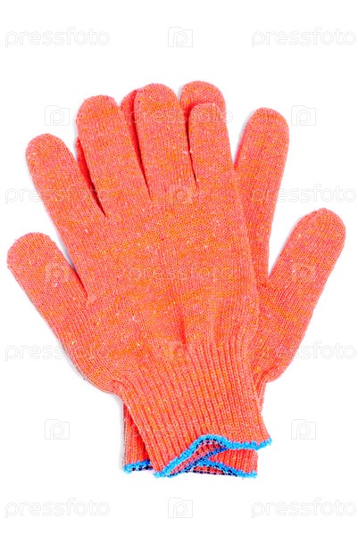 Оранжевые перчатки с резиновым покрытием на белом фоне