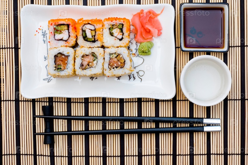 Суши маки на тарелке