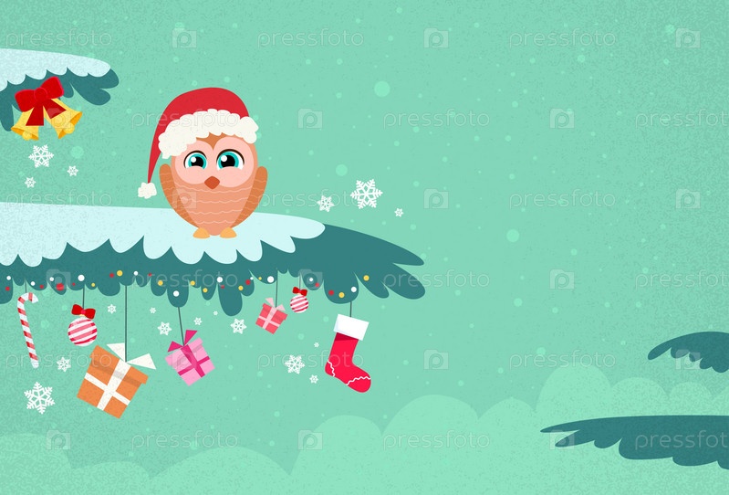 Рождественские сова, сидя на дерево зима