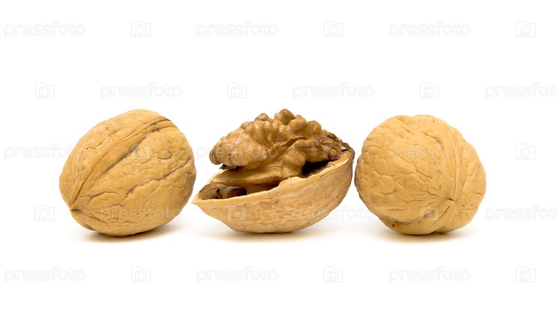 Грецкие орехи на белом фоне