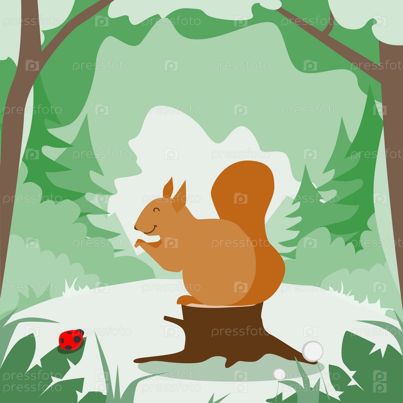 Белка в зеленом лесу