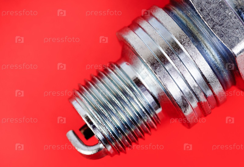 Свеча зажигания крупным планом на красном фоне