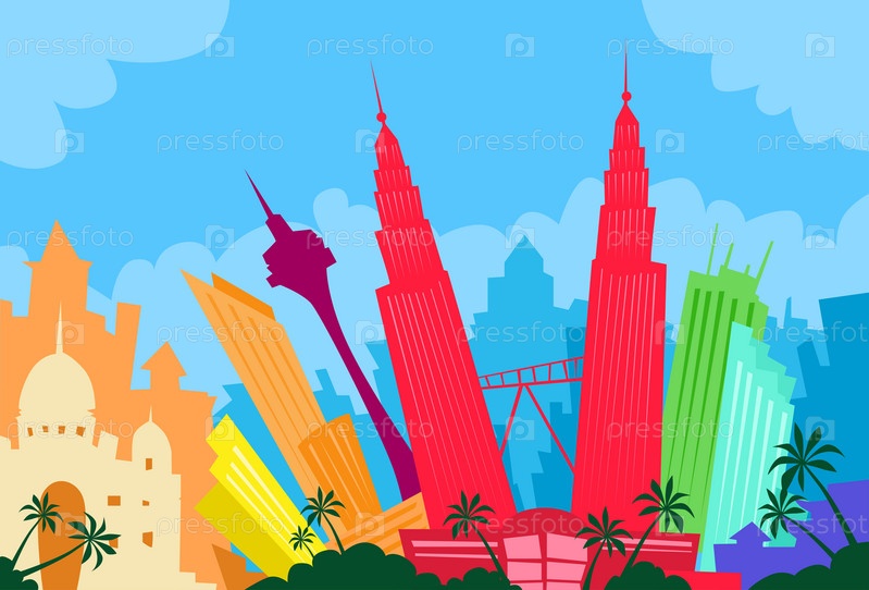 Силуэт города Куала-Лумпур Малайзия абстрактный пейзаж небоскреб