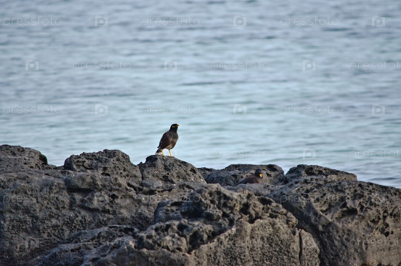 Птица на вулканических камнях