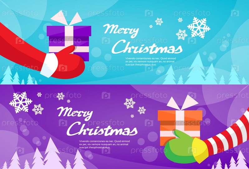 Счастливого Рождества Санта-Клауса руки Держите подарок баннер