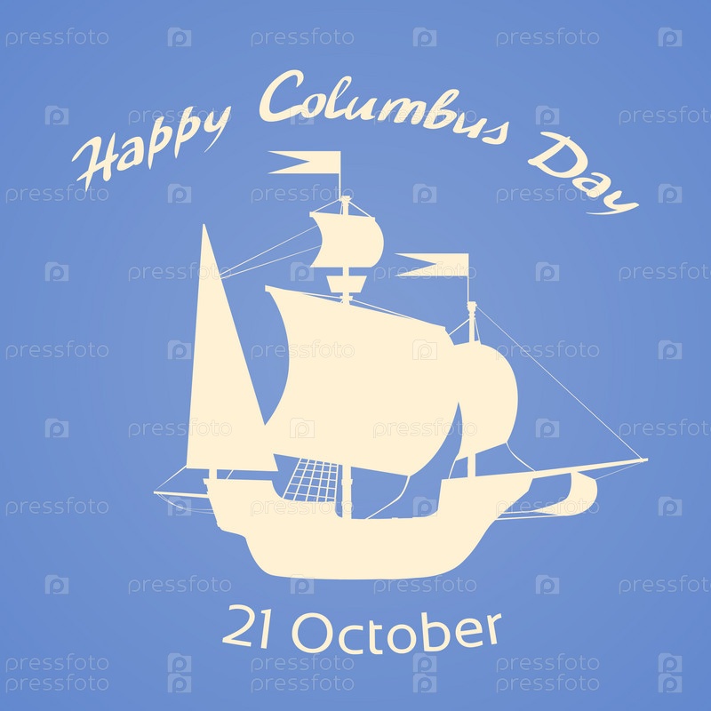 Счастливый День Колумба корабль праздник силуэт с плоским
