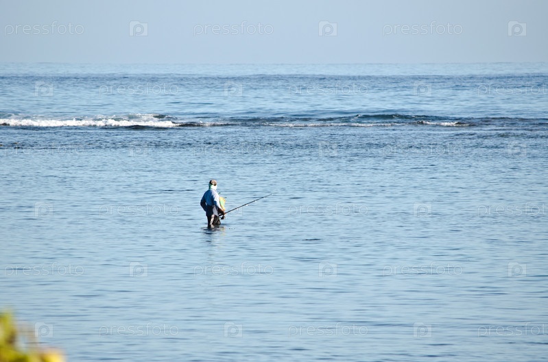 Рыбак с удочкой на побережье