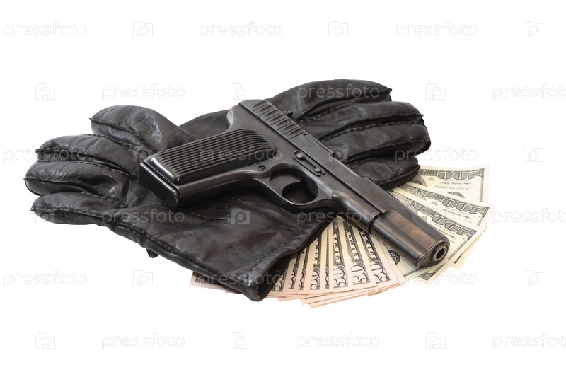 Пистолет на перчатки и деньги