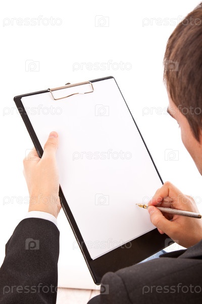 Близкий снимок руки бизнесмена, подписывающего контракт. изолированный на белом фоне