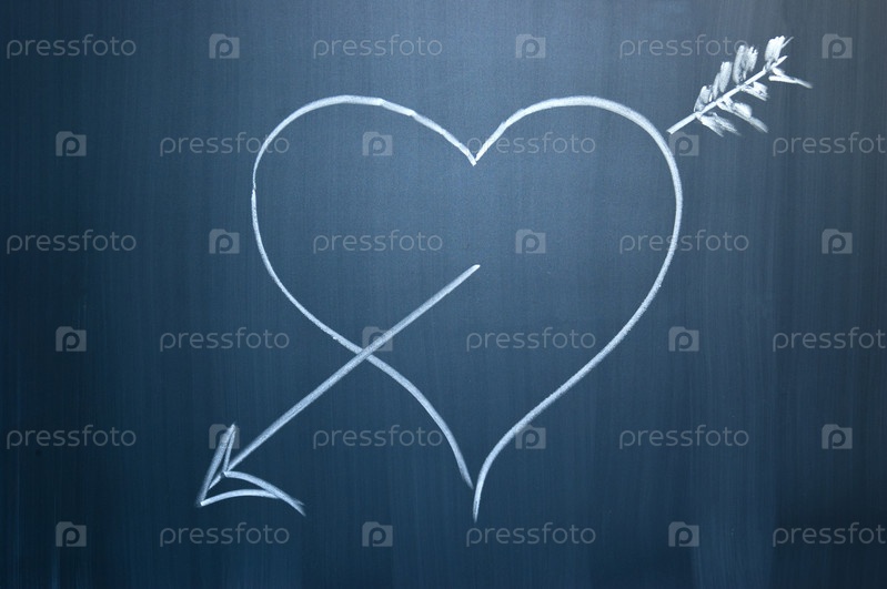 Сердце со стрелой, нарисованное мелом на доске