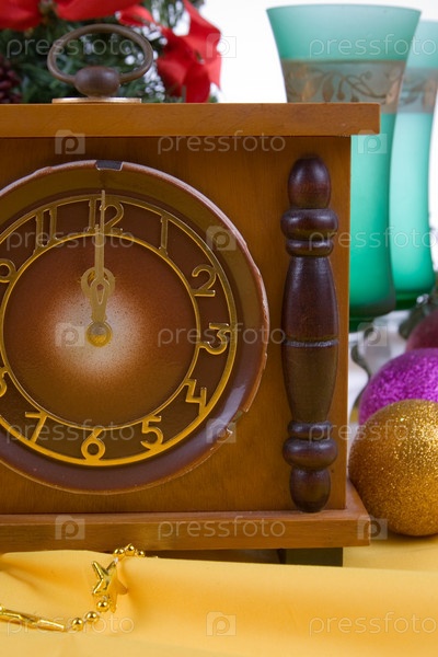 Натюрморт с часами и елочными украшениями