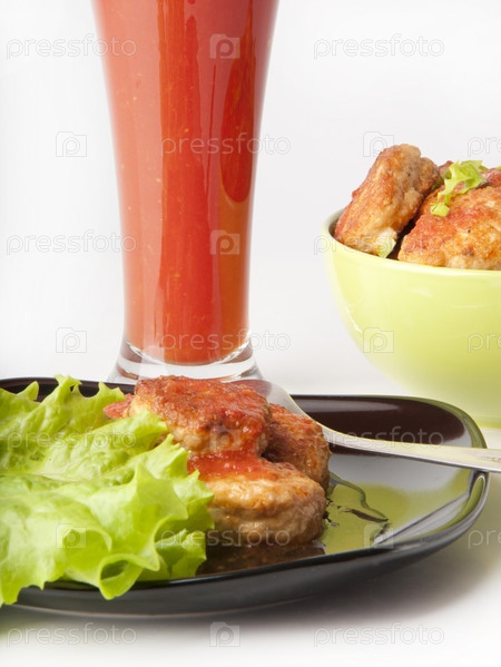 Котлеты, зелень и томатный сок