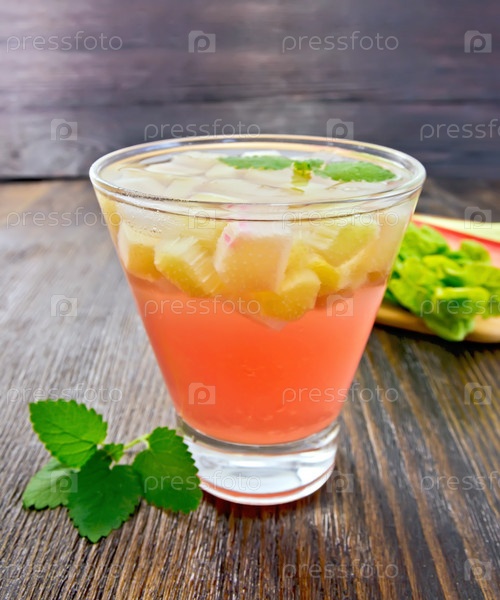 Лимонад с ревенем и мятой на темной доске