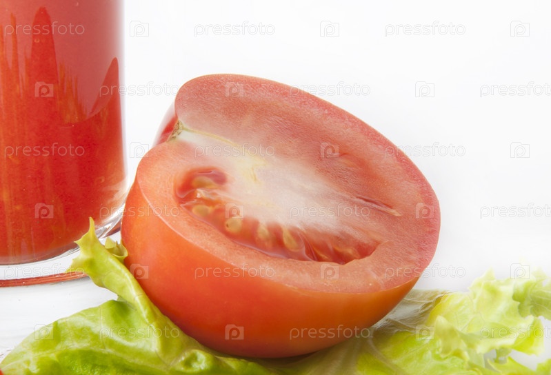 Томатный сок, лист салата и помидор