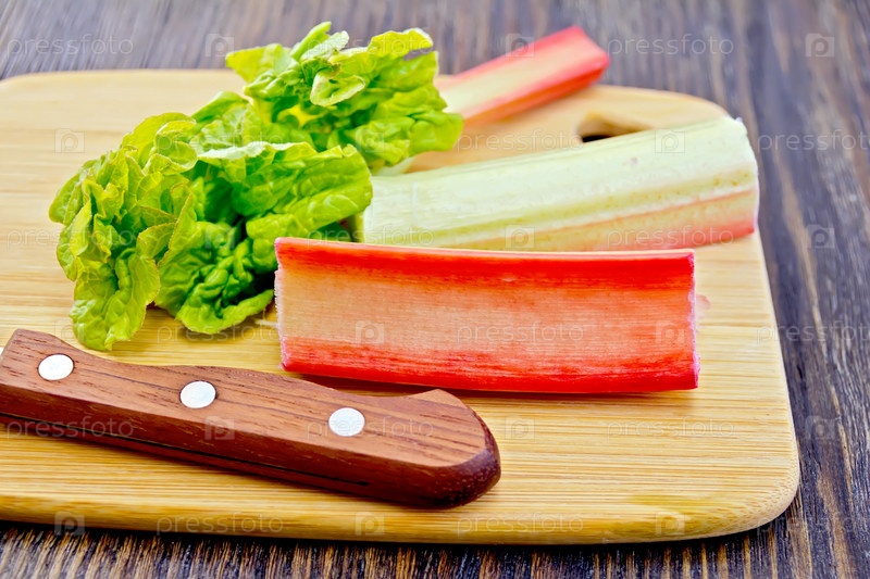 Ревень с ножом и листом на доске