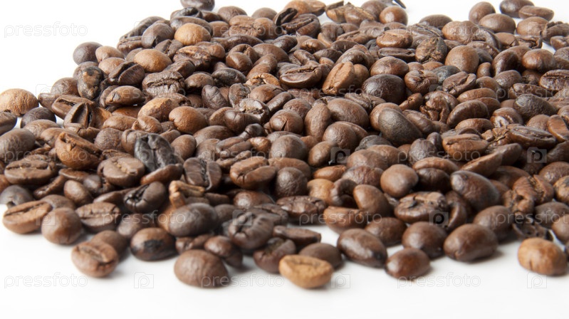 Кофейные зерна на белом фоне