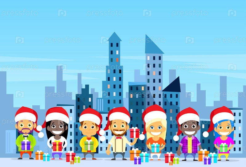 Зимние небоскреб снежный город с людьми