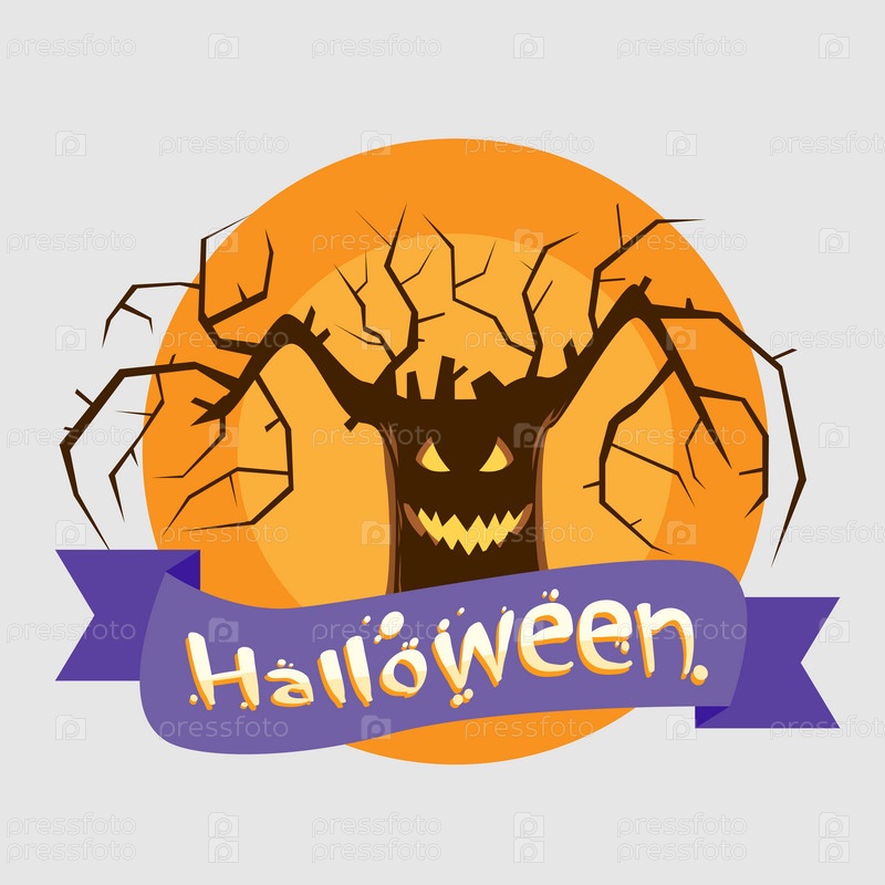 Хэллоуин дерева баннер страшно улыбка лицо глаза