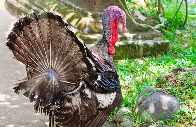 Турецкий индюк на зеленой траве