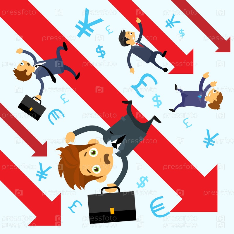 Предприниматели падать вниз финансовых граф красный график стрелки кризис
